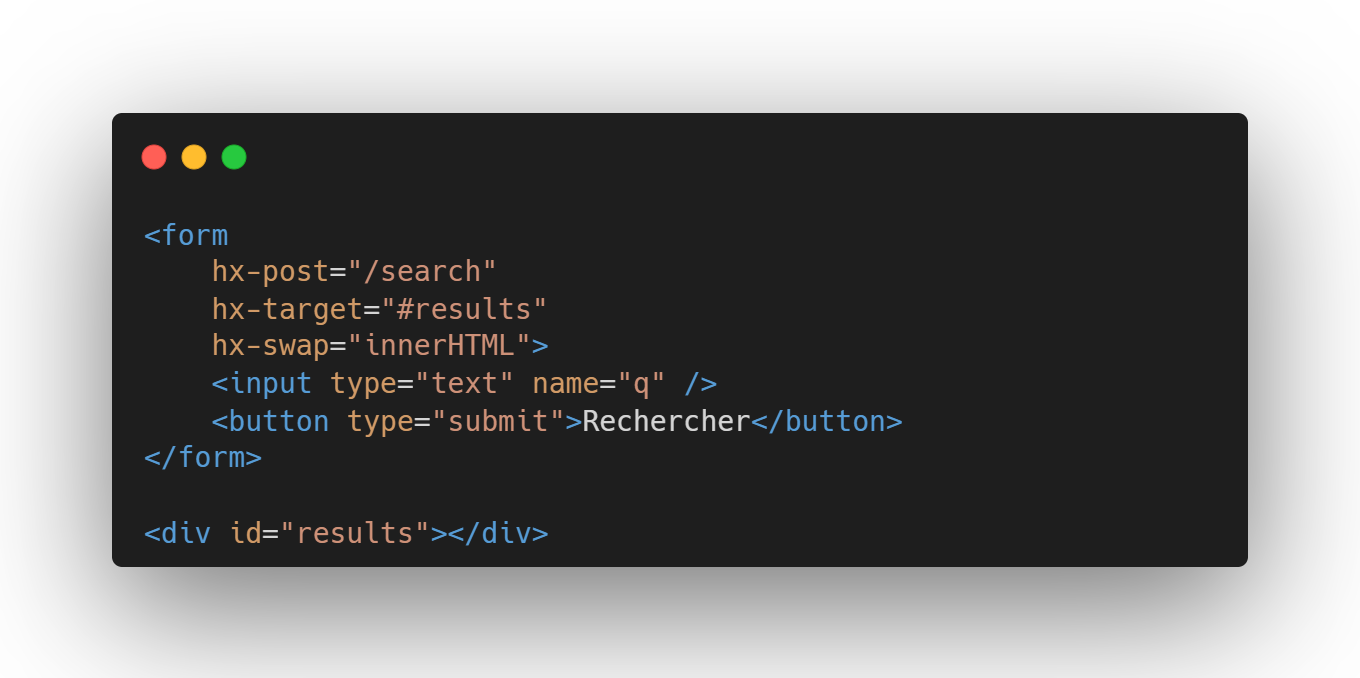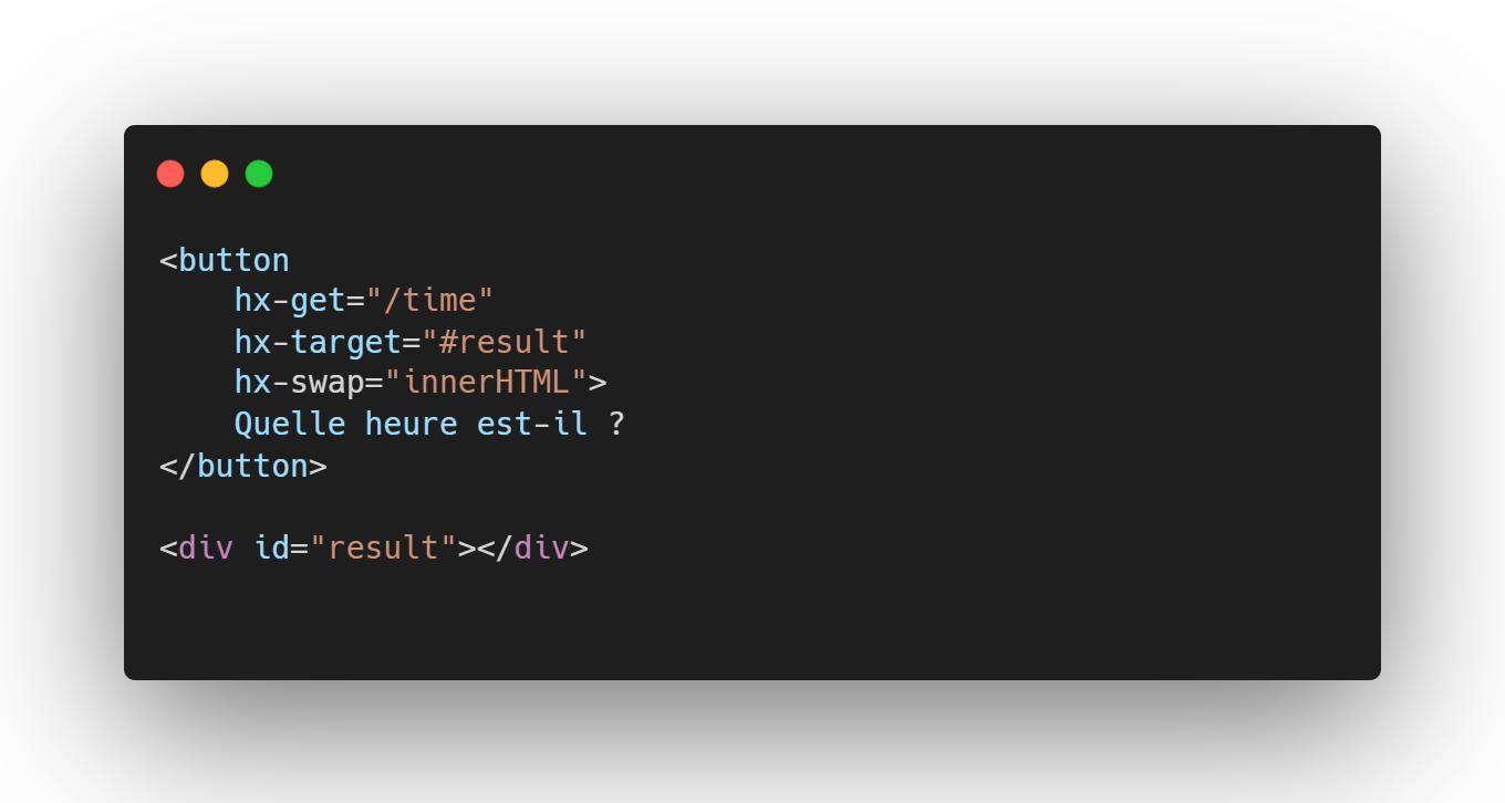 Aucun JavaScript n’est nécessaire. Le bouton déclenche une requête AJAX, HTMX remplace le contenu de #result et l’interface est mise à jour.