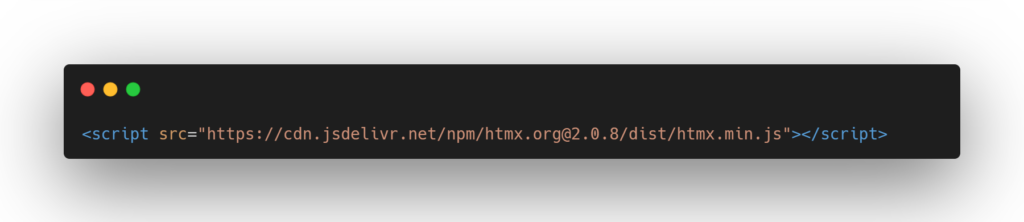 Avant même d’aborder les concepts, l’un des premiers atouts de HTMX réside dans sa simplicité d’intégration et son poids extrêmement réduit. L’utilisation de la bibliothèque se limite à l’inclusion d’un unique script JavaScript, sans étape de build ni dépendances complexes :